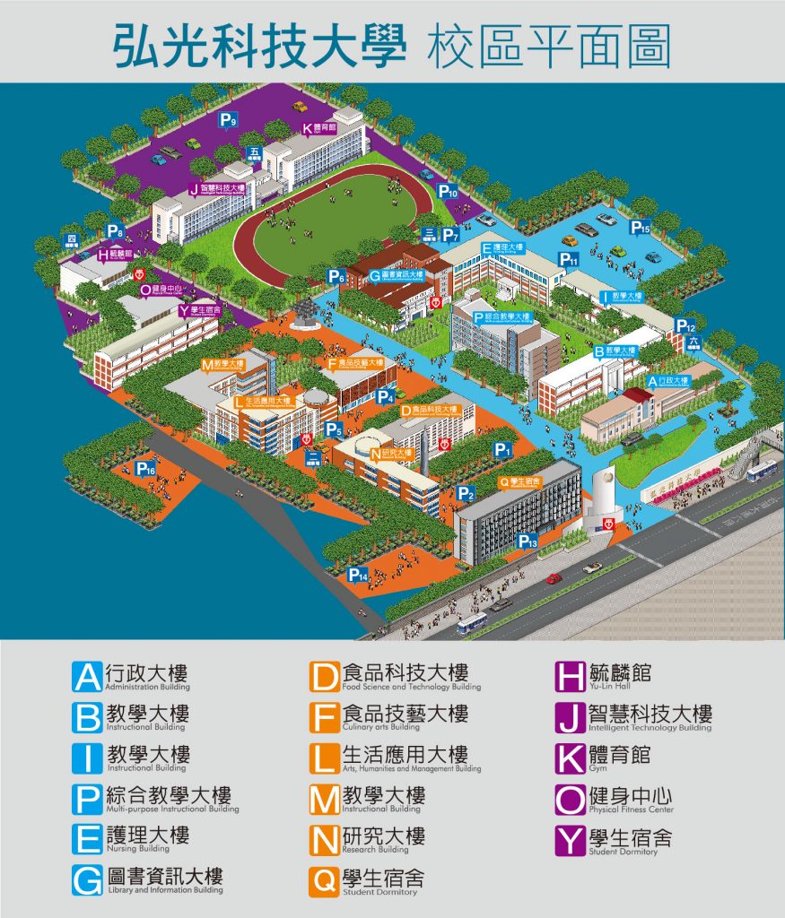 全校平面圖,標示行政/教學單位位置圖